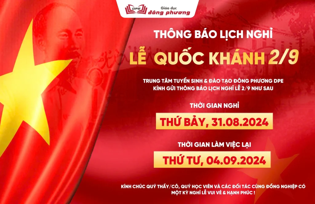 Thông báo chính thức: Trung tâm không có bất cứ chi nhánh hay sự hợp tác nào ngoài những thông tin đã công bố trên website. Để tránh rủi ro vui lòng liên hệ trực tiếp thông qua các kênh chính thức của Giáo dục Đông Phương DPE.